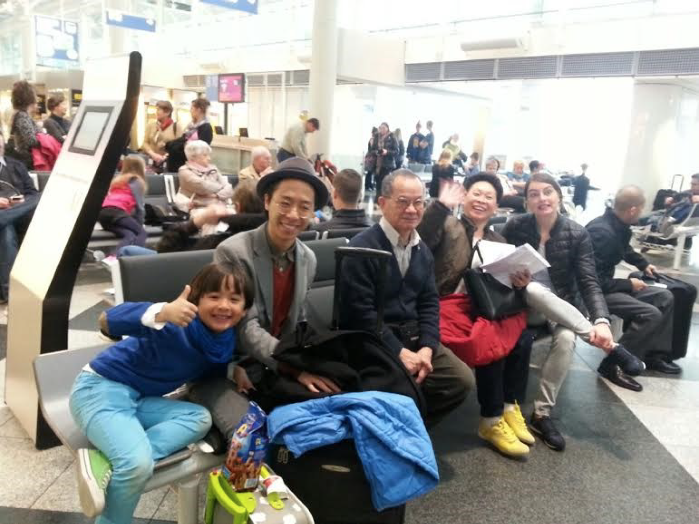 Đến nơi, chiếc xe bus 9 chỗ ngồi đã chờ sẵn và tháp tùng còn có hai bạn thân của cháu vì chuyến máy bay đã đến cùng giờ.