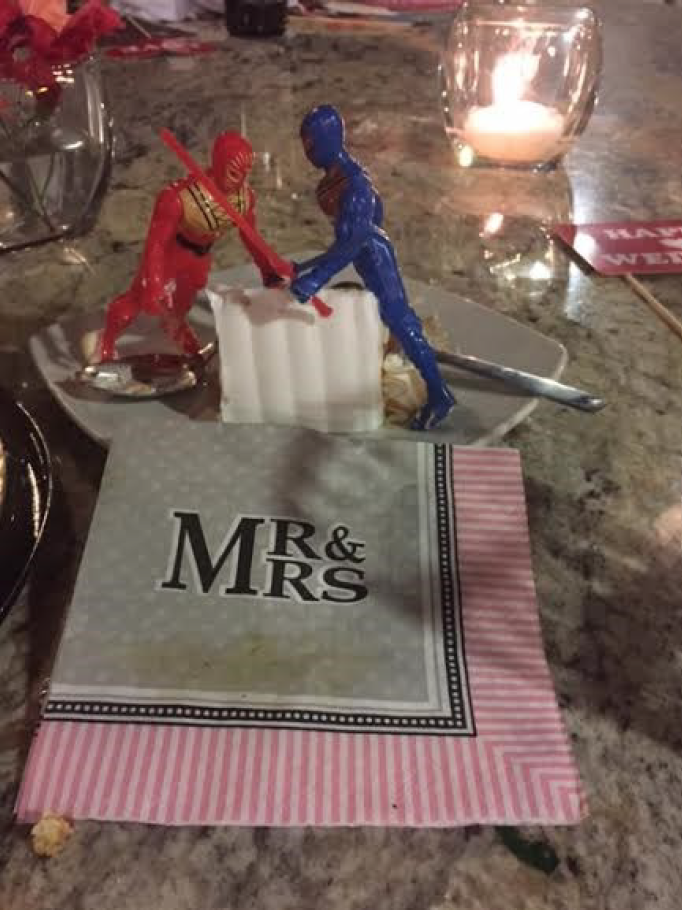 Rồi chiếc bánh cưới nho nhỏ được mang ra, trên được chưng bày hai nhân vật Ninja , chú rể cô dâu tươi cười giới thiệu hai nhân vật này tượng trưng cho chúng con đó, suốt đời chúng con muốn sống thật đơn giản, chân thật và yêu thương hết cả mọi người.