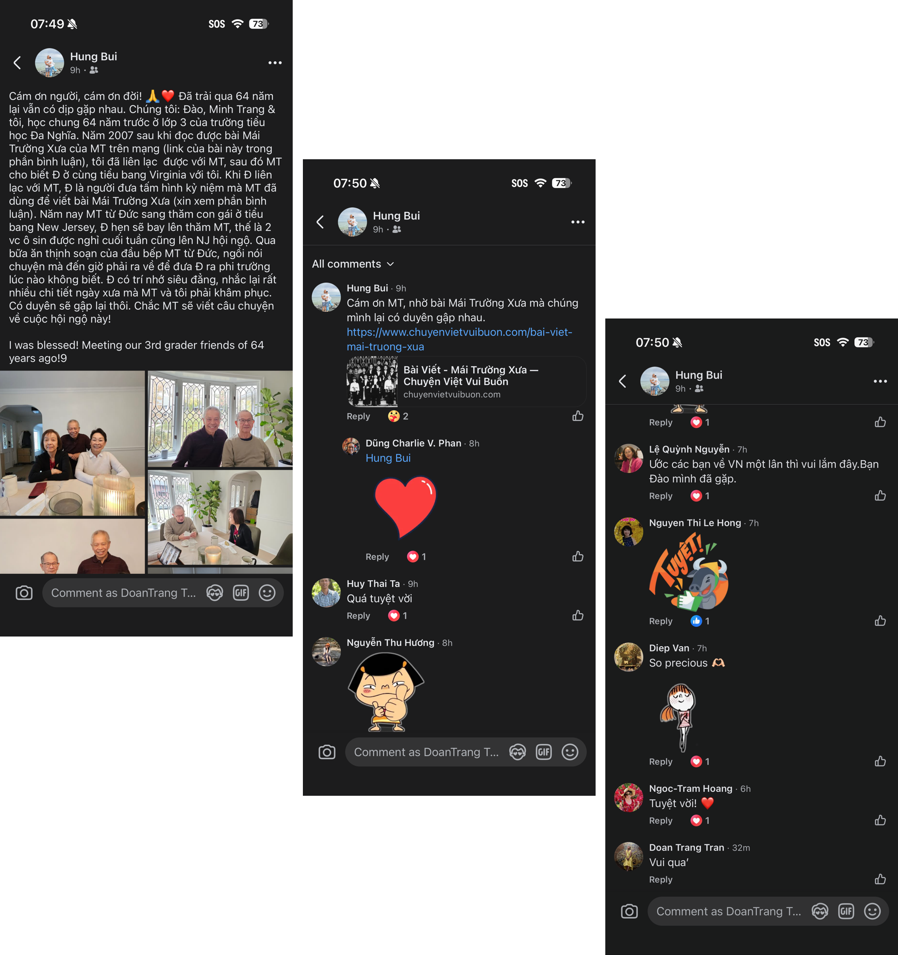 Hôm sau khi Hùng cho lên Facebook thuật lại cuộc gặp gỡ thì các bạn như Nguyễn Lệ Quỳnh, Nguyễn thị Lệ Hồng, Diệp Văn, Dũng Charlie, Tạ huy Thái.... Các bạn cùng thốt lên “thật tuyệt vời...!”